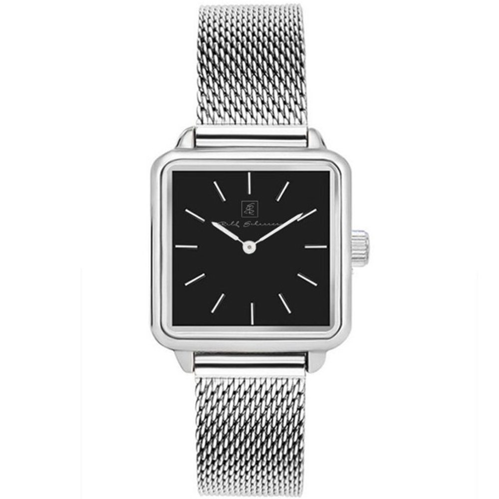 Damenuhr viereckig Mesh silber mit schwarzem Ziffernblatt